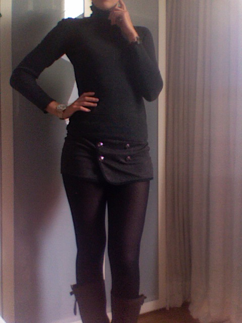 || skirt/ short, forever 21 || tights, v&d || boots, dr. adams || turtle neck sweater, sting || watch, guess || leather jacket, silver creek || cross bracelet, six ||